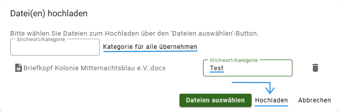 → Es öffnet sich ein neues Fenster „Dateien hochladen“.