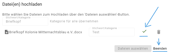7. Sie erkennen den erfolgreichen Upload an dem Häkchen.