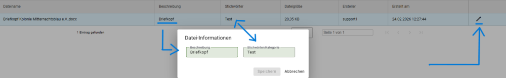 1. In der Liste finden Sie rechts das Stift-Icon für jene Datei.