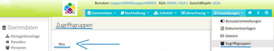 - Gehen Sie zu Einstellungen → Zugriffsgruppen.