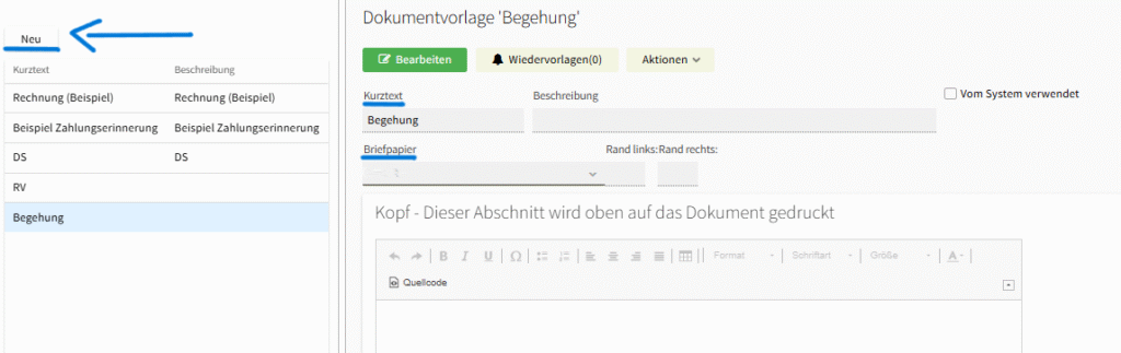Damit die erfassten Begehungen einheitlich abgelegt werden können, legen Sie eine Dokumentenvorlage an.