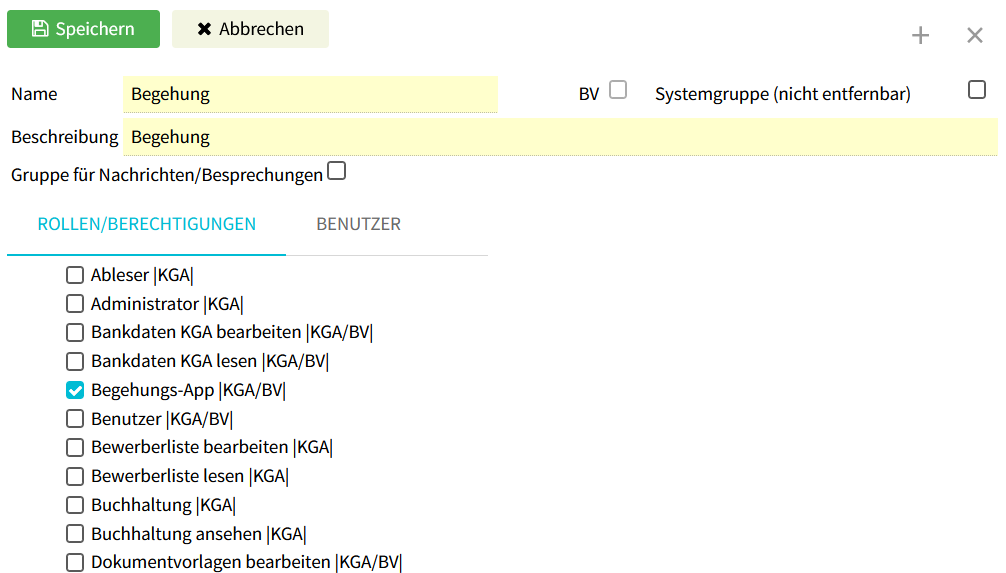 - Setzen Sie nur das Häkchen bei „Begehungs-App“.