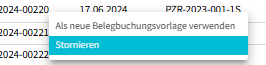 4. Rechtsklick auf die Buchung → „Stornieren“ auswählen.