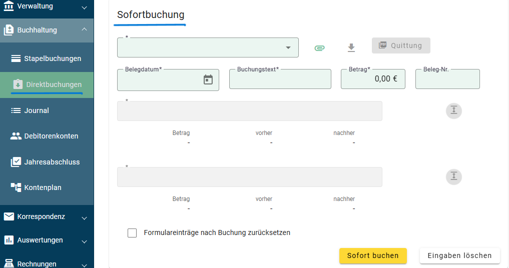 Bei einer Direktbuchung wird die Buchung sofort endgültig gebucht.