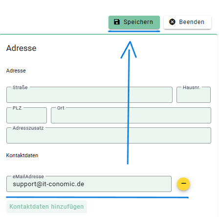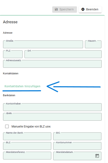 - Klicken Sie auf den Button Kontaktdaten hinzufügen.
