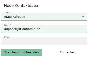 - Es öffnet sich das Fenster Neue Kontaktdaten.