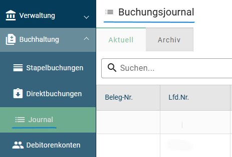 - Bitte beachten Sie: Das Mahnwesen / die Mahnläufe finden Sie in der linken Seitenleiste unter Zahlungsverkehr.