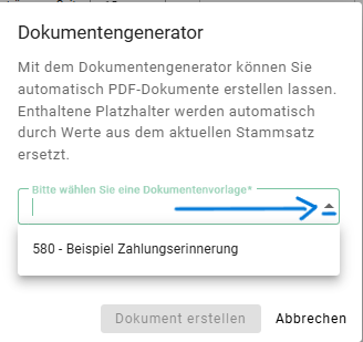 2. Wählen Sie über den kleinen Pfeil eine Dokumentenvorlage aus.
