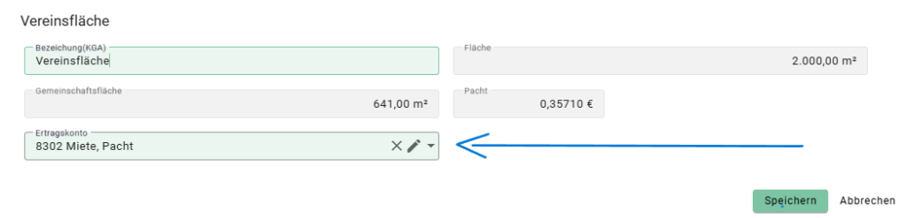 - Prüfen Sie in diesem Fall die Angaben in der Vereinsfläche und hinterlegen Sie das für Sie passende Ertragskonto.