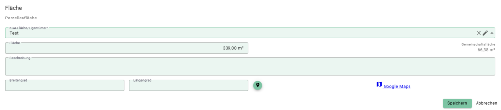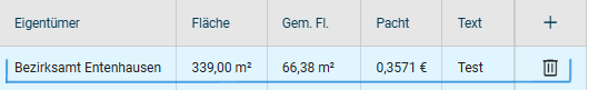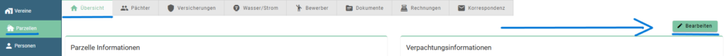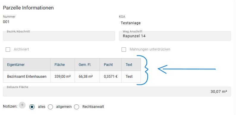 - Gehen Sie im Bearbeitungsmodus im Bereich Parzelleninformationen auf einen vorhandenen Eintrag unterhalb der Überschriften.