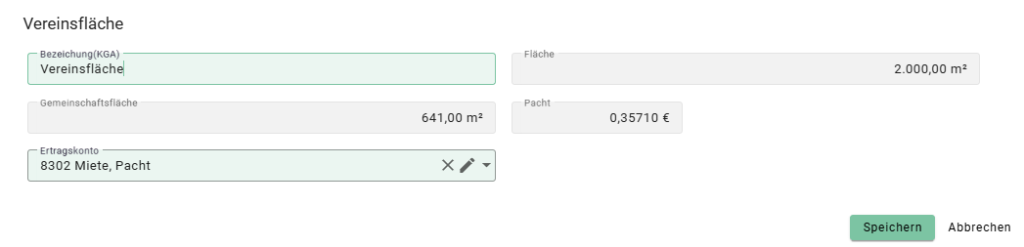 - Dort tragen Sie den Namen der Vereinsfläche ein.