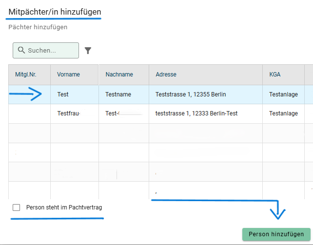 - Es öffnet sich das Fenster Mitpächter hinzufügen.