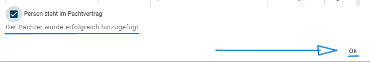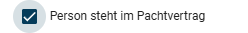 - Setzen Sie bei Bedarf das Häkchen bei Person steht im Pachtvertrag.