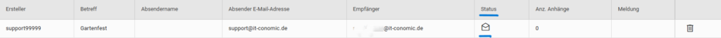 • Nach dem Speichern hat die E-Mail den Status „offen“.