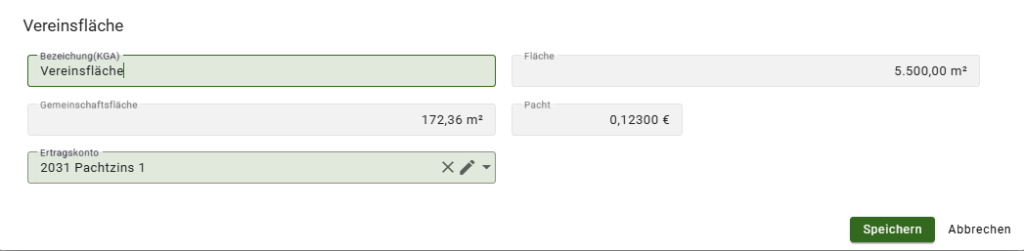 Dort tragen Sie den Namen der Vereinsfläche ein.