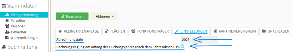 Die Rechnungslegung kann laut dieser Einstellung erst zu Beginn des Jahres 2026 erfolgen, also nach dem Jahresabschluss 2025.