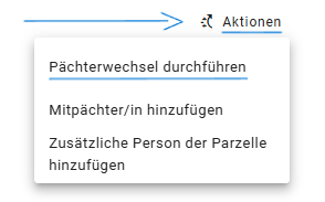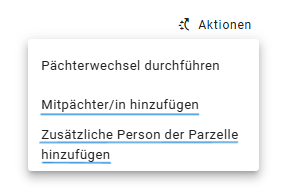 → Über Aktionen → Partner hinzufügen können Sie zusätzlich einen Mitpächter auf die bestehende Parzelle eintragen.
