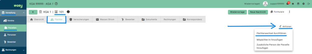 - Wählen Sie anschließend „Pächterwechsel durchführen“ aus.