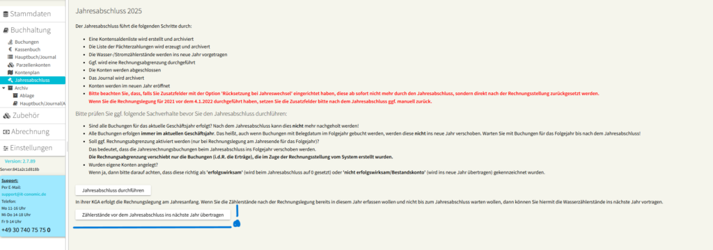 Es gibt die Möglichkeit, die Zählerstände vor dem Jahresabschluss zu erfassen und ins nächste Jahr zu übertragen.