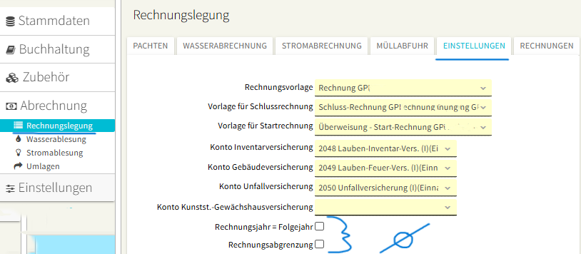Unter Einstellungen → Rechnungslegung müssen folgende Optionen überprüft werden:
